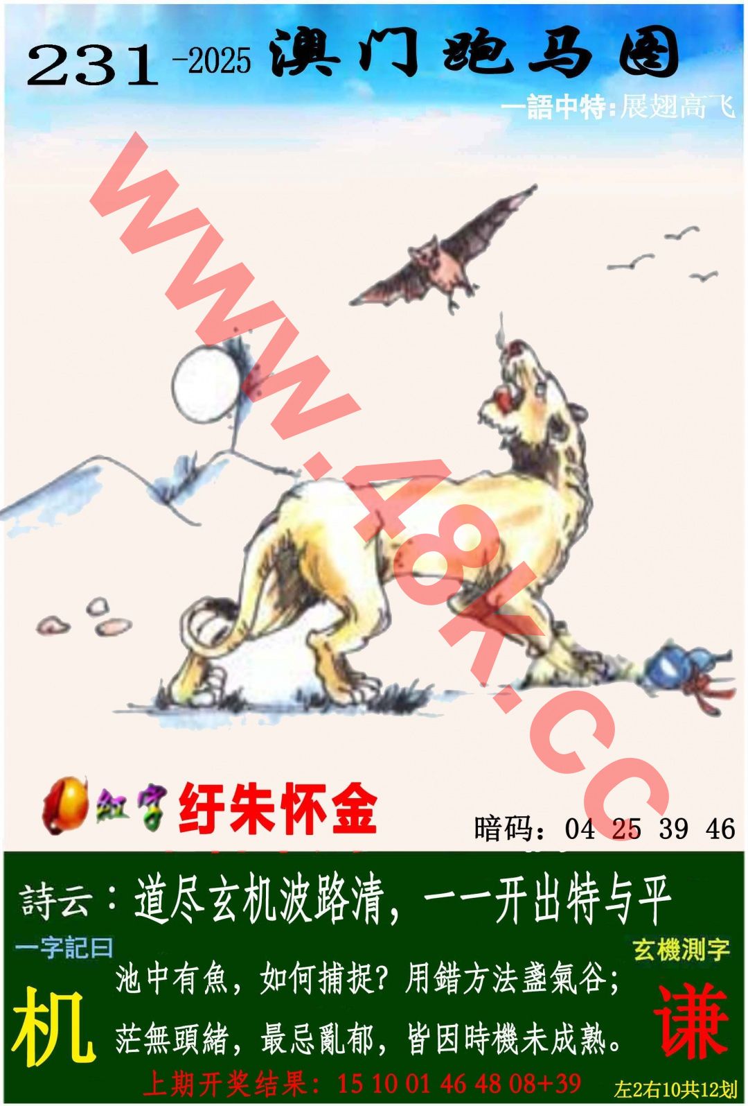 2025-231期一字記之曰:《机》 池中有魚,如何捕捉?用錯方法盏氣谷 茫無頭緒,最忌亂郁,皆因時機未成熟 【谦】<br> 解析:这段文字讲的是等待时机的智慧:池中有鱼比喻机会存在,但强求只会徒劳(盏气谷即白费力气);茫然时最忌胡乱行动,要静候成熟时机。用生肖表达:鼠(善观察)、牛(有耐心)、兔(懂谨慎)、龙(待风云)、蛇(静潜伏)、猴(巧应变)、猪(稳守候)——七生肖共同诠释静观其变,伺机而动的哲理。强攻如虎反易惊鱼,躁动如马恐毁良机,真正智慧在于知进退。注:刻意避开虎、马、羊、狗、鸡这五个生肖,因其特性更倾向主动出击或随性而行,与等待主题稍悖。<font color=\\#FF0000\\\\\"><br> 综合取肖:鼠牛兔龙蛇猴猪<br> 综合取码:06.18.05.17.03.15.26.37.34.19</font>